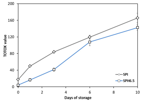 3.3.2. Oxidative Stability of the Emulsion under Optimal Conditions