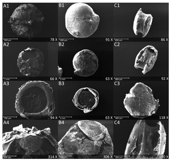 Lowering the initial saponin content and improving the taste is the main reason for quinoa polishing and processing. The polishing detaches the remaining perianth (Figure 2(A1,A2)), a panicle residue that plays a protective role to the seeds during maturation and storage [20].