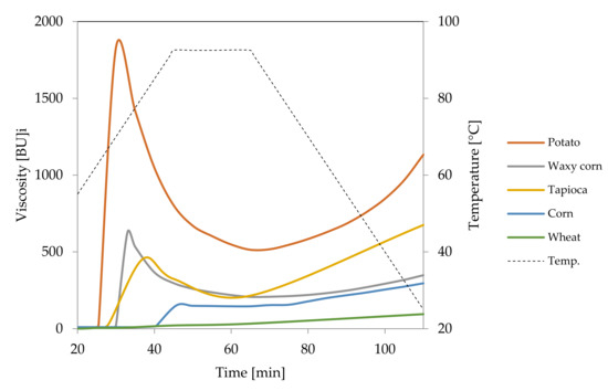 - Ai, Y.; Jane, J.-L. Gelatinization and rheological properties of starch. Starch/Stärke 2015, 67, 213–224. [Google Scholar]