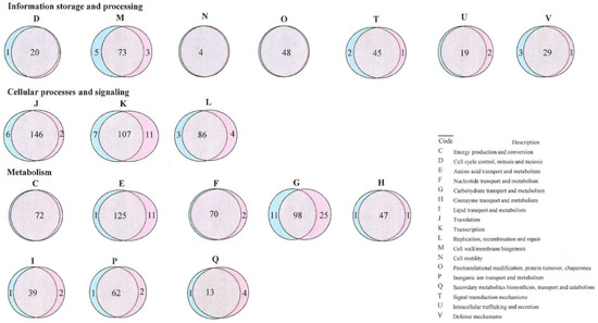 - Galperin, M.Y.; Makarova, K.S.; Wolf, Y.I.; Koonin, E.V. Expanded microbial genome coverage and improved protein family annotation in the COG database. Nucleic Acids Res. 2015, 43, D261–D269. [Google Scholar] [CrossRef] [PubMed]