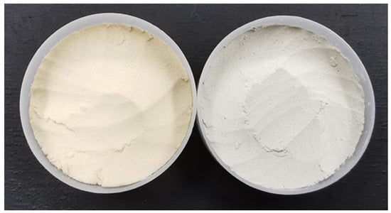 Soy protein isolate (left); and hemp protein concentrate (right) powder.