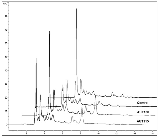 Ferulic acid (FA) profile of Control, AUT100, AUT115, and AUT130.