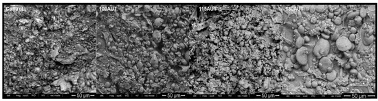 SEM images of WB Control, AUT100, AUT115 and AUT130.