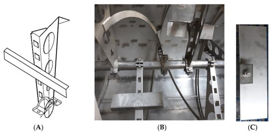Details of the modified reel (A) Isometric view of the modified radial element of the reel, (B) malaxer tank equipped with modified reel and (C) the rectangular shaker element mounted on the radial elements.