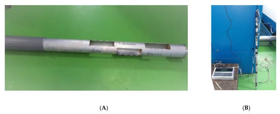 Olive paste sampler and sampling from the malaxer. (A) stainless steel bar with probes arranged in three different points and connected (B) to the BABUC data acquisition system.