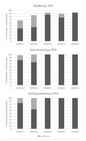 3.5. Consumption of Non-Fructosylated α-GOS Per Donor and Degree of Polymerization