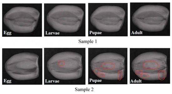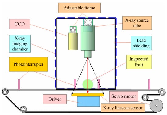 - Chuang, C.-L.; Ouyang, C.-S.; Lin, T.-T.; Yang, M.-M.; Yang, E.-C.; Huang, T.-W.; Kuei, C.-F.; Luke, A.; Jiang, J.-A. Automatic X-ray quarantine scanner and pest infestation detector for agricultural products. Computers 2011, 77, 41–59. [Google Scholar] [CrossRef]