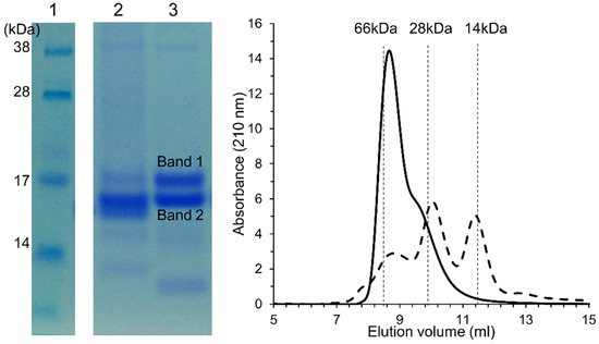 g, the supernatant was collected and proteins were precipitated by 20% ammonium sulfate at ambient temperature. The precipitated proteins were dissolved in 100 mM ammonium acetate, pH 6.9, and dialyzed against the same buffer overnight. The protein solution was cleared by centrifugation and heat-treated at 70 °C for one hour to denature all β-amylases. After centrifugation, the crude extract was loaded on a size-exclusion column with Sephadex G-100 (100 cm × 26 mm) connected to an Äktä prime plus system (GE Healthcare, Uppsala, Sweden), and eluted with the same acetate buffer (flow rate 0.5 mL/min). Fractions with molecular size around 60 kDa were collected according to the marker BSA (66 kDa). The fractions were combined, dialyzed, and lyophilized for the study of ATI tetramers. For identification, the amylase inhibitory activity of the collected fractions against α-amylase from porcine pancreas (PPA) and α-amylase from