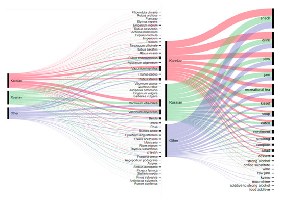 (The Republic of) Karelia is characterized by limited agriculture due to its northern location and mostly forested landscape and thus a higher percentage of wild food (as products of fishing, hunting, and gathering) in the daily diet. The ethnobotanical knowledge of the Karelian region has not been described or analyzed to date. The works by Lebedeva and Tkachenko [10,18,19] that mention Karelians were based on published sources and primarily concern Karelians living in other parts of NW Russia—Leningrad, Vologda and Tver’ regions—and are solely quantitative, paying little attention to detail, such as preparation methods and foods made, time of use, etc.
