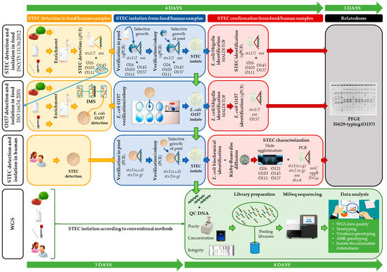 - Holmes, A.; Dallman, T.J.; Shabaan, S.; Hanson, M.; Allison, L. Validation of Whole-Genome Sequencing for Identification and Characterization of Shiga Toxin-Producing Escherichia coli to Produce Standardized Data to Enable Data Sharing. J. Clin. Microbiol. 2018, 56, 1–10. [Google Scholar] [CrossRef] [PubMed]
