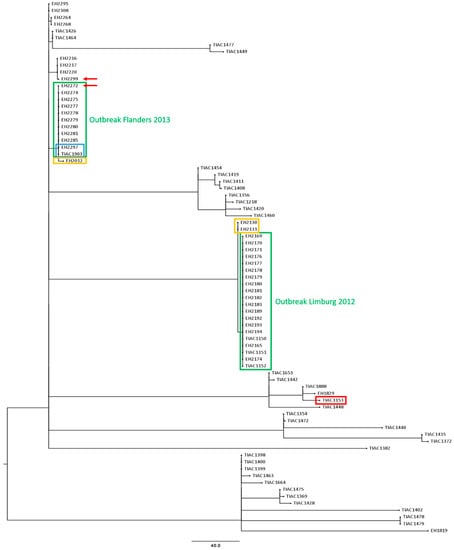 2.2. Retrospective WGS-Based Outbreak Analysis