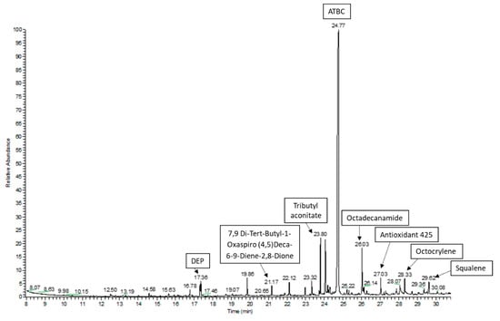 - Galmán Graíño, S.; Sendón, R.; López Hernández, J.; Rodríguez-Bernaldo de Quirós, A. GC-MS screening analysis for the identification of potential migrants in plastic and paper-based candy wrappers. Polymers 2018, 10, 802. [Google Scholar] [CrossRef] [PubMed]
