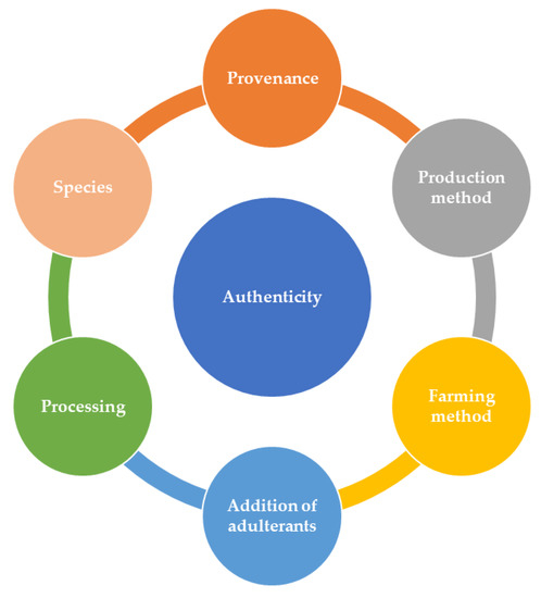 In recent years, consumers have become more concerned about the quality and safety of food products and have become keenly interested in knowing more about food authenticity and food fraud. In other words, consumers demand more complete information about their food, including what they are really buying, where the food comes from, and when and how it was produced. Although fraud and adulteration have been practiced since ancient times, it is only in recent years that food authenticity issues have been more exposed, and public attention has been intensively paid to the magnitude of this problem and the serious consequences of food fraud [1,2]. Furthermore, during the current pandemic period with coronavirus raging around the world, affecting every aspect of life, including food choices and nutrition habits, consumers have become even more concerned about safety, accessibility, affordability, and the origin of food products than any time before. This increased interest in food authenticity may also be explained by the numerous food scandals over the last few years (e.g., horsemeat scandal in 2013 and rotten meat from Brazil in 2017) and the increased consumer awareness about the impacts of food fraud in terms of illegal economic gain, as well as negative effects on the public health and the environment. Nonetheless, several recent studies have indicated that fraud or mislabeling is still a widespread practice, especially in food products of animal origin, which are often considered among the most frequently adulterated foods [3,4,5,6]. Market globalization and increases in international trade, driven by fewer obstacles to the export and import of food, a complex food production chain, and the complex nature of food products of animal origin, the huge variety of these products, as well as the emergence of tricky and more sophisticated forms of fraud are some of the reasons that could explain this rise in food fraud and why detection and prevention are challenging tasks [7,8,9,10].
