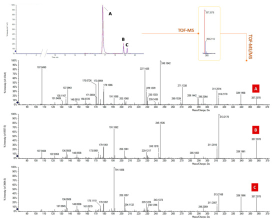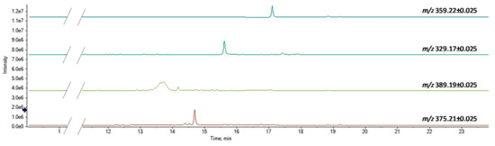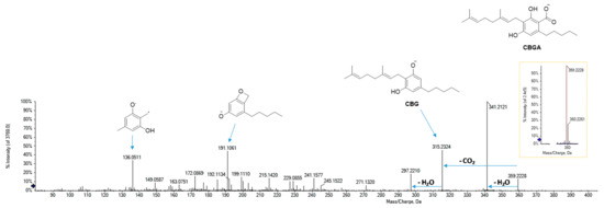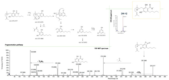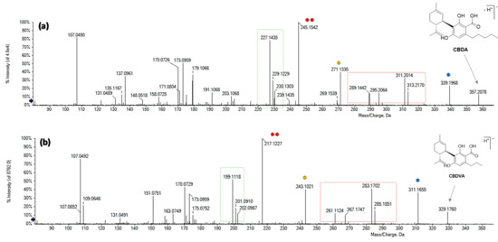 - Berman, P.; Futoran, K.; Lewitus, G.M.; Mukha, D.; Benami, M.; Shlomi, T.; Meiri, D. A new ESI-LC/MS approach for comprehensive metabolic profling of phytocannabinoids in Cannabis. Sci. Rep. 2018, 8, 14280. [Google Scholar] [CrossRef]