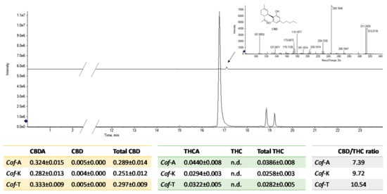3.1. Quali-Quantitative Analysis of the Main Phytocannabinoids
