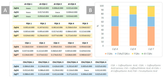 2.3. Quantification of Phytocannabinoids, Chlorogenic Acids and Caffeine