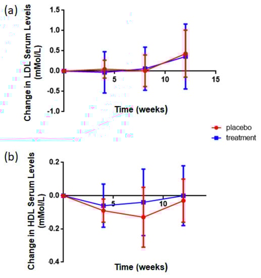 Fasting blood samples were collected at baseline and on week 4, 8, and 12 of the study. Blood samples were centrifuged, and the resulting serum stored at −80 °C until analysis.