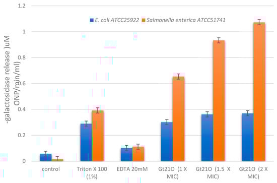 | Salmonella enterica subsp. enterica ATCC51741 | E. coli ATCC25922 | Salmonella enterica subsp. enterica ATCC51741 | E. coli ATCC25922 | |||||||||