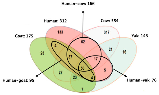Shared and uniquely identified and quantified proteins in humans, cows, goats, and yaks. Adapted from Lu et al., 2016 [61].
