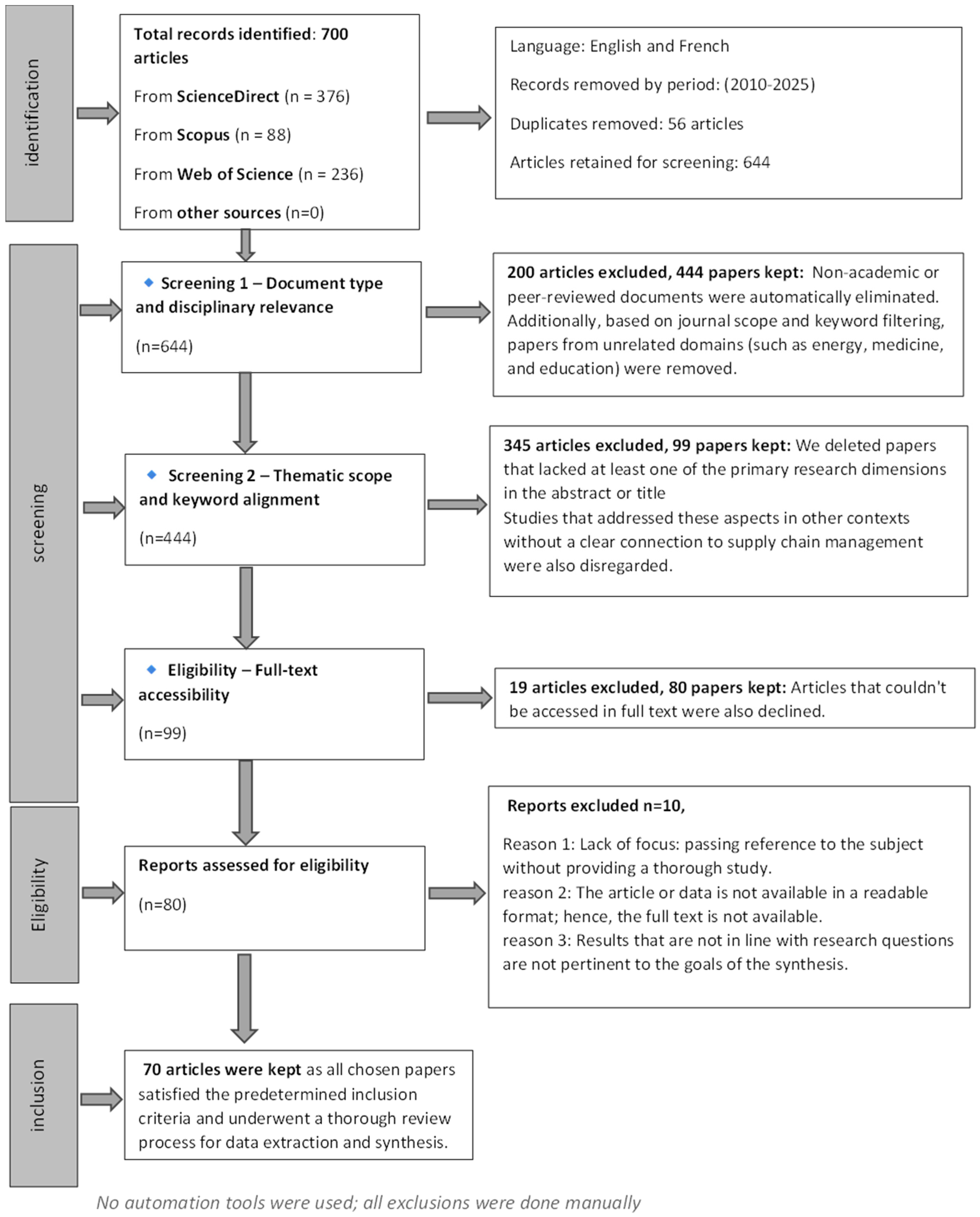 - Articles that include at least one of the targeted keywords: GSCM, SCRES, SCV, or optimization;