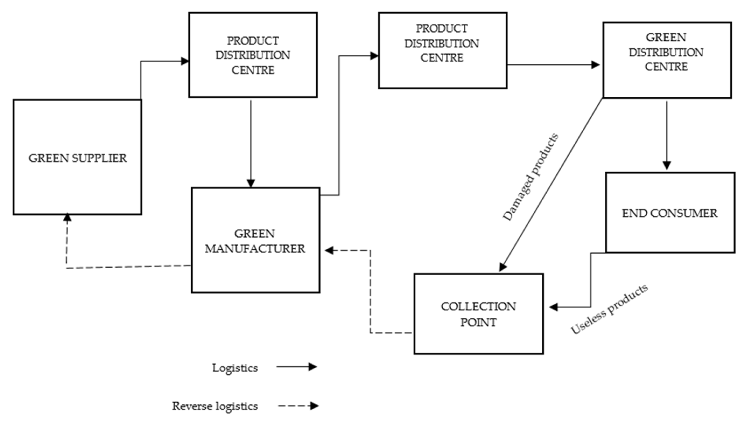 | Reverse logistics | The planning, implementation, and control of the efficient and cost-effective flow of raw materials, production stocks, finished goods, and related information from the consumer to the place of origin (production) is of paramount importance. The purpose of this flow is to recover the value of the product and reuse it. | This is the process of returning goods to the place from which they were originally obtained. | [44,46,67,68,69,70] |