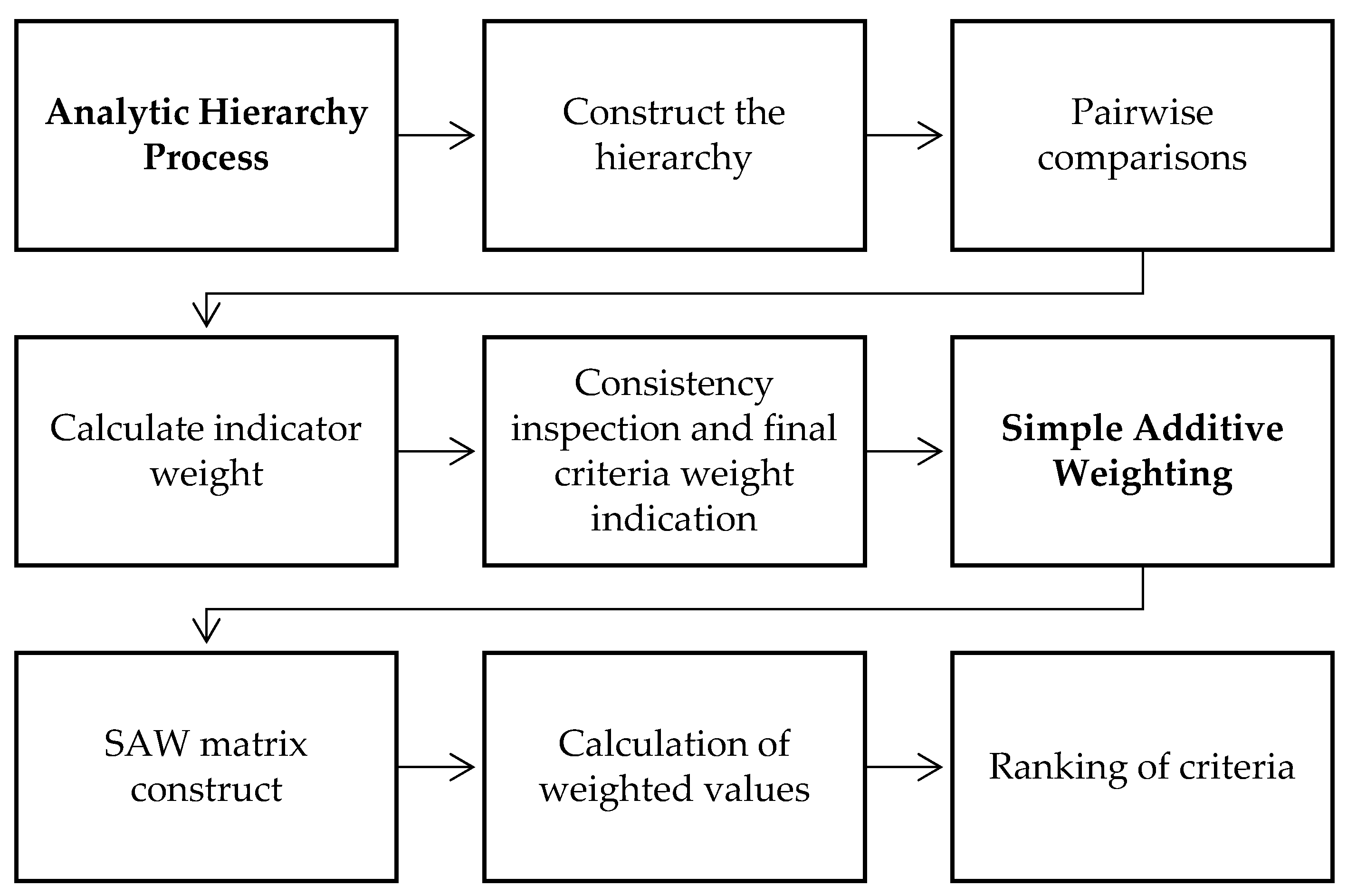 - Taherdoost, H. Analysis of Simple Additive Weighting Method (SAW) as a MultiAttribute Decision-Making Technique: A Step-by-Step Guide. J. Manag. Sci. Eng. Res. 2023, 6, 21–24. [Google Scholar] [CrossRef]