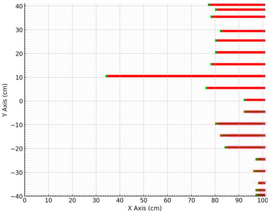 For this test, variation along the Y-axis was eliminated, while predefined positions on the X-axis and specific tag orientation angles relative to the antenna were established. Successive measurements were performed, and it was recorded whether tag detection occurred for each position. Successful identification was marked with the value “1,” whereas the absence of detection was marked with the value “0,” as presented in Table 3.