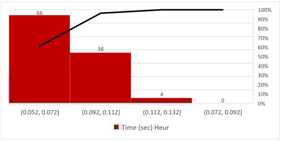 Figure 9 shows the Pareto graph of the solution time of the heuristic algorithm: 61.1% instances are solved in 0.052 to 0.072 s.