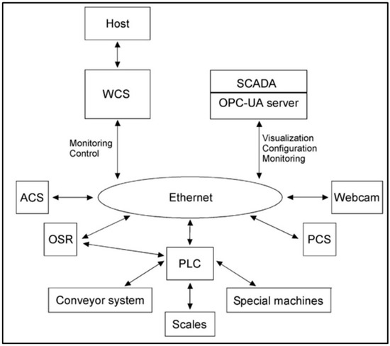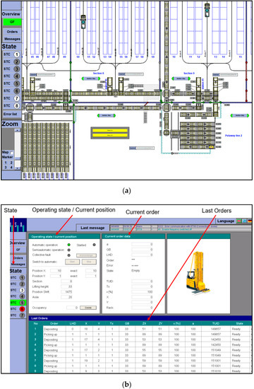 The visualization of the automation system is performed by the SCADA software. With this software, the entire warehouse can be monitored, and individual warehouse areas can be started and stopped. SCADA is used for actions such as starting and stopping the conveyor system and electronics for individual warehouse areas, displaying and exporting active and archived messages, confirming error messages, and displaying and exporting statistics. It is installed on a server or computer that assumes the function of the server. The user calls up its GUI through a client. Any hardware device in the warehouse that connects through a web browser to the SCADA server is referred to as a client. The client must have a network connection to the SCADA server. Working with SCADA is possible with every hardware device that has a functioning web browser (Internet Explorer, Firefox, Chrome, etc.). OPC-UA comprises the interface between SCADA and the systems that are visualized on the GUI. Through the SCADA’s GUI, all error messages of conveyors are displayed, which are then used by the company for further analysis, as is explained later on.