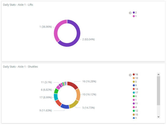 For measuring performance and keeping track of the maintenance needs of both automation systems, all error messages from VNAs, shuttles, lifts and conveyors are recorded and analyzed through Kibana, a data analytics and visualization platform. Within this platform, system messages are categorized according to the system and division they belong to, and, therefore, it is easy for the technical team of the company to observe abnormalities and possible problems on the various system components. Visualization of the error messages is done either with pie charts, graphs, or simply list of messages, as seen on examples on