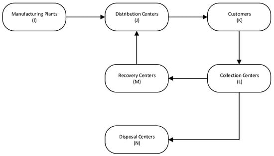 - Jindal, A.; Sangwan, K.S. Closed loop supply chain network design and optimisation using fuzzy mixed integer linear programming model. Int. J. Prod. Res. 2014, 52, 4156–4173. [Google Scholar] [CrossRef]