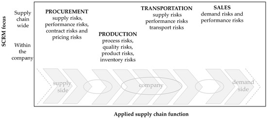 In order to prevent disturbances, companies should apply Supply Chain Risk Management (SCRM) [4,5,9,10]. Supply Chain Risk Management is ‘a part of Supply Chain Management which contains all strategies and measures, all knowledge, all institutions, all processes, and all technologies, which can be used on the technical, personal, and organizational level to reduce supply chain risk’ [11] (p. 157). The aim is to increase the transparency and robustness of value-added processes in order to counteract any supply chain interruptions or even avoid them altogether [12,13,14]. Here, a distinction must be made between reactive and proactive SCRM. Reactive SCRM refers to all activities that are carried out after the occurrence of a supply chain risk in order to keep the extent of damage as low as possible [15]. In contrast, proactive SCRM includes all activities carried out prior to the risk occurring in order to proactively protect the company from supply chain risks [10].