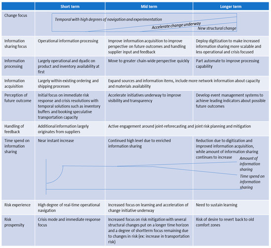 Change management has accelerated against prepandemic roadmaps and approaches but the largest change focus has been on navigating initial disruptions (such as supply disruptions) first and disruptions that followed (such as transportation bottlenecks) after that. The nature of changes introduced has been largely of temporal nature (such as shorter-term inventory buffering), coupled with the acceleration of existing initiatives (such as supplier diversification). Additional new structural changes (such as the development of previously unplanned information technology projects) have been initiated in a few areas but they are far from completion for most and risks that existed in supply chains prepandemic remain unmitigated to date (such as the sole sourcing in case company 5). On top of that, there is a possible tendency to return to prepandemic global sourcing strategies after the reduction of supply risks and the normalization of demand risks. While not widely found yet, this tendency raises the possibility that certain structural changes and a lasting improvement and change in supply chain governance may be at risk.
