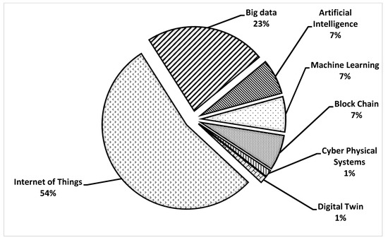 The abstract, title, and full text (only those available) were thoroughly reviewed by the authors to retrieve information on the percentage or volume of technological tools adopted in FSC-based research, which is shown in Figure 4. The inferences show that IoT and big data have been extensively applied; however, AI, ML, cyber-physical systems, digital twin, and blockchain technology still need more attention to discover further implications and benefits for FSC. Later, authors divided FSC based on food quality, safety, and waste and found out the relevant technological adoptions to meet the research objectives which is portrayed in Table 3. The findings reveal that IoT-assisted blockchain technology, RFID integrated with IoT, artificial intelligence, and machine learning were applied to improve food safety and quality.