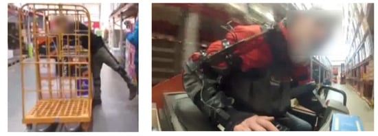 This is due to the fact that they are commonplace in retail and warehouse logistics operations processes for blue-collar workers. The weight frames were selected related to average weight data in the relevant retail warehousing operations. The activities exhibit characteristic posture patterns (see Figure 6).