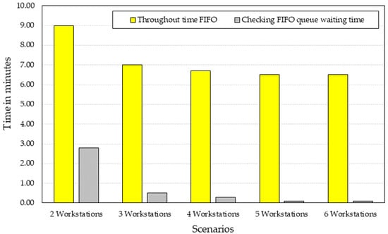 If the Multi Code pallet goes to the FIFO area, it is only recorded and checked. These tasks take 26.0 and 250.0 min, respectively. Thus, the Throughput Time of a Multi Code pallet in the FIFO area is 286.8 min (Table 2).