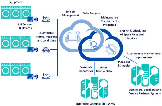 31]. From the maintenance point of view, the main idea is to use IoT sensors placed in every machine enabling communication between devices, systems, and the flow of information between them [