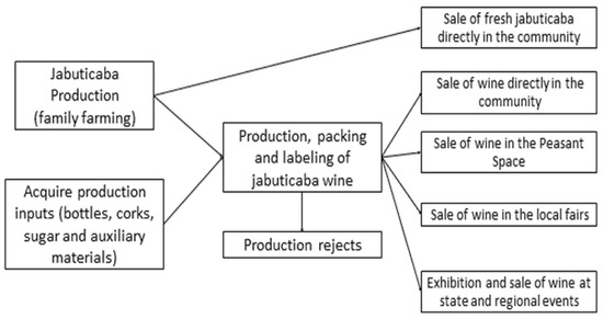 The relationship of these residents with the processing of jabuticaba fruit dates back to the mid-1970s, when an employee of the state agency, the National Institute for Colonization and Agrarian Reform (INCRA), provided a recipe to a resident who started producing what is locally called jabuticaba wine. Figure 1 is a flowchart that summarizes the stages of the supply chain of its production.