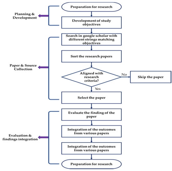 The framework illustrated in Figure 1 indicates the research areas covered in this study. As there remains a gap in proper data integration in these areas, this study conducts a systematic literature review (SLR) towards covering those gaps. Initially, a conceptual model was developed for SLR (Figure 2), which shows that the study was conducted in several steps toward acquiring reliable research outcomes. This SLR was developed based on the proposed methodology of [32].