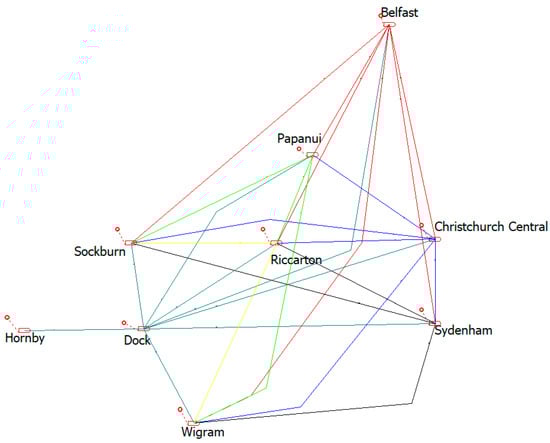 - Lyu, Z.; Pons, D.; Zhang, Y.; Ji, Z. Freight Operations Modelling for Urban Delivery and Pickup with Flexible Routing: Cluster Transport Modelling Incorporating Discrete-Event Simulation and GIS. Infrastructures 2021, 6, 180. [Google Scholar] [CrossRef]