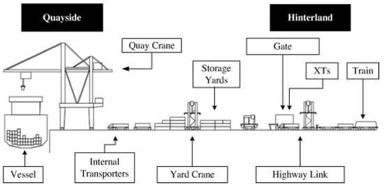 - Eltawil, A.B. A systematic approach to container terminal planning and operational decision making. In Proceedings of the International Maritime Transport & Logistics Conference, Alexandria, Egypt, 17–19 March 2013. [Google Scholar]