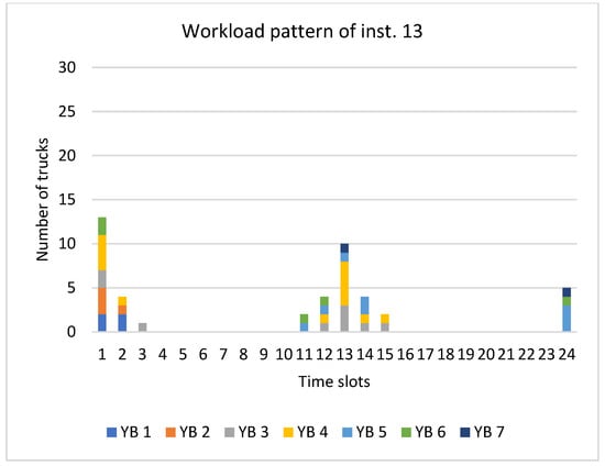 Some experiments were performed on selected instances to understand the impact of balancing the workload patterns inside the terminal. Choosing instance 13 goes for having the lowest workload among all instances.