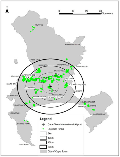 Mokhele M, Mokhele T. Spatial Configuration of Logistics Firms Relative to Cape Town International Airport, South Africa. Logistics. 2022; 6(3):49. https://doi.org/10.3390/logistics6030049