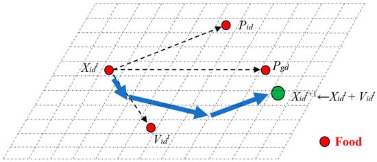 Moreover, each particle can record its own best experience of flying as well as detect and share other particles’ knowledge. The best experience here implies whichever permutation set generates the best fitness value. Based on this characteristic, we initiated the movement of pursuing quality positions (learning) to compose the cognition mode (Pid − Xid) and social mode (Pgd − Xid), respectively. Therefore, the difference in velocity can be obtained by this subtraction procedure.