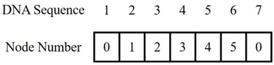 Every gene can be represented as an integer number, as shown in Figure 5. Each node number is the gene and has a corresponding DNA order. In this paper, number 0 means depot, and other numbers represent customer’s number. This representation in route planning means a vehicle starts from depot 0, visits node 1, node 2, node 3, node 4, node 5, and finally returns to depot 0.