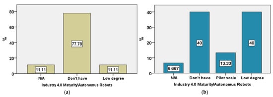 Response to Industry 4.0 Maturity\Autonomous Robots question from two categories: (a) SME respondents; (b) Industry 4.0 experts.