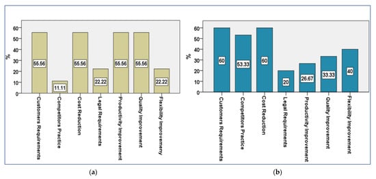 Response to Industry 4.0 Drivers multi-response question from two categories: (a) SME respondents; (b) Industry 4.0 experts.