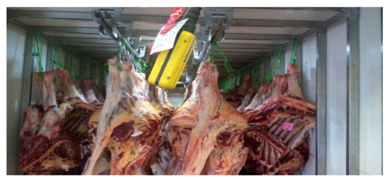 In addition, after post-mortem inspection, the healthy carcasses are marked with a green stamp and re-dried in cold rooms. After this maturation stage, which lasts about 48 h, the carcasses and other slaughter products are delivered to customers by refrigerated means of transport (lorries, vans or trucks) (Figure 5).