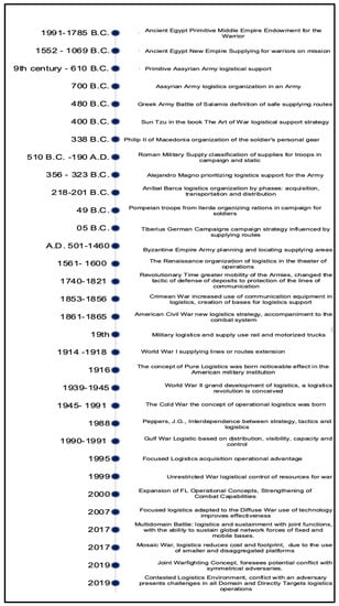 Timeline and event in military logistics evolution.