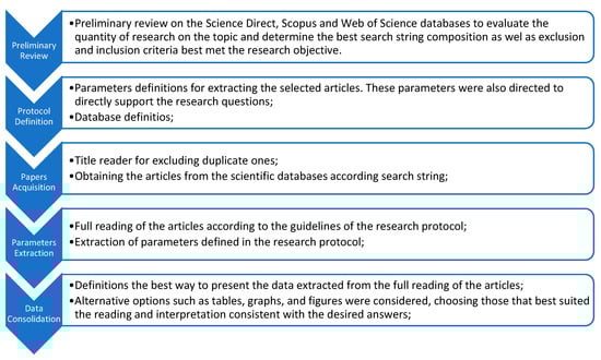 This paper is structured as follows: Section 2 describes the methodological procedures employed in the study, including the research protocol, search strings, researched bases, and exclusion and inclusion criteria. Section 3 presents a bibliometric study that characterizes the evolution of publications relevant to the research scope. Section 4 outlines the research parameters related to the characterization of the data extracted from the selected articles. Section 5 provides the conclusions, limitations of the study, research gaps, theoretical and practical implications of the results, and proposals for future research.